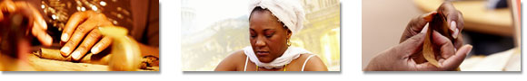 Beobachten Sie, wie die geschickten Hände der Rollerin den Capote glätten, aus einigen Blättern eine spezielle Mischung zusammenstellen, die Zigarre rollen und am Ende mit der Capa vollenden, voilà un puro cigarro!